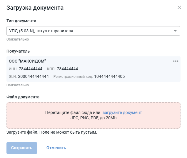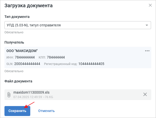 Создание УПД из Excel-шаблона для сети «Максидом» на CorePlat