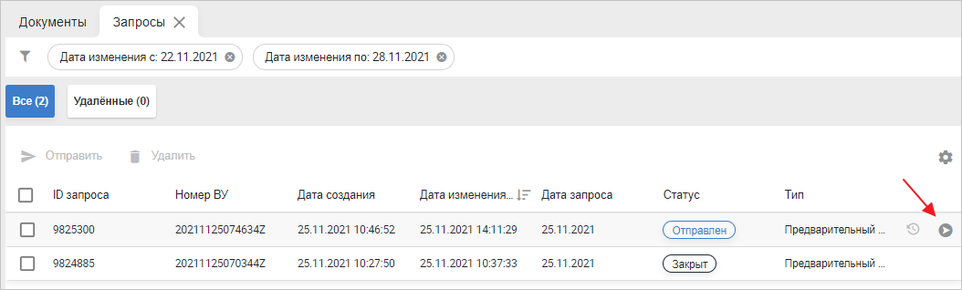 В случае, если было несколько «Ответов на запрос», остальные изменят статус на «Отклонён».
