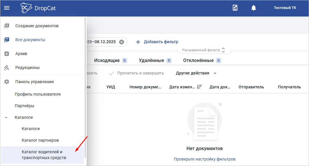 Работа с «Каталогом водителей и транспортных средств» на DropCat