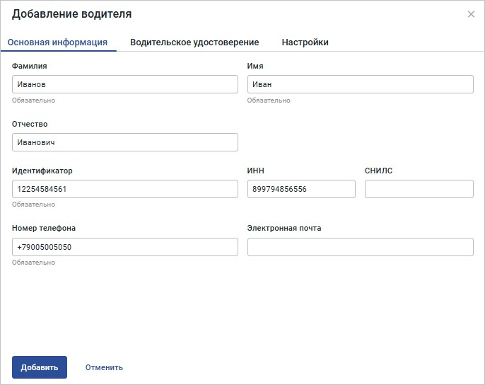 После добавления всех водителей нажмите «Сохранить» (Рис. 7).