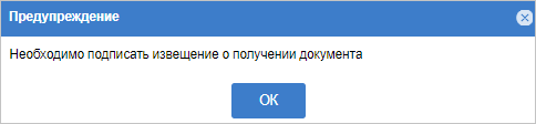Система отобразит окно с информацией о необходимости подписать извещения. Нажмите «Ок» (Рис. 2).