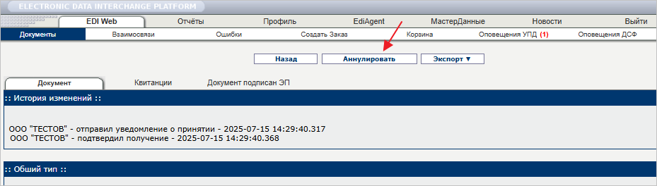 Аннулирование GENRAL (Общий тип) на EDI Platform