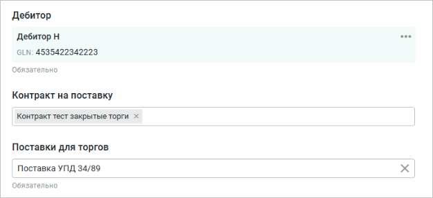 Выберите дебитора, с которым у вас заключён «Контракт на поставку» по установленным параметрам в заявке (Рис. 8).