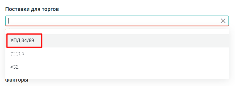 Для создания нового лота откройте главное меню и перейдите в раздел «Торги», затем нажмите кнопку «Создать лот». В форме создания лота установите необходимые параметры факторинга и торгов, выберите дебитора. В выпадающем списке поставок на торги также доступна упрощённая поставка из отмененного лота и контракт поставки, связанный с ней (Рис. 3).
