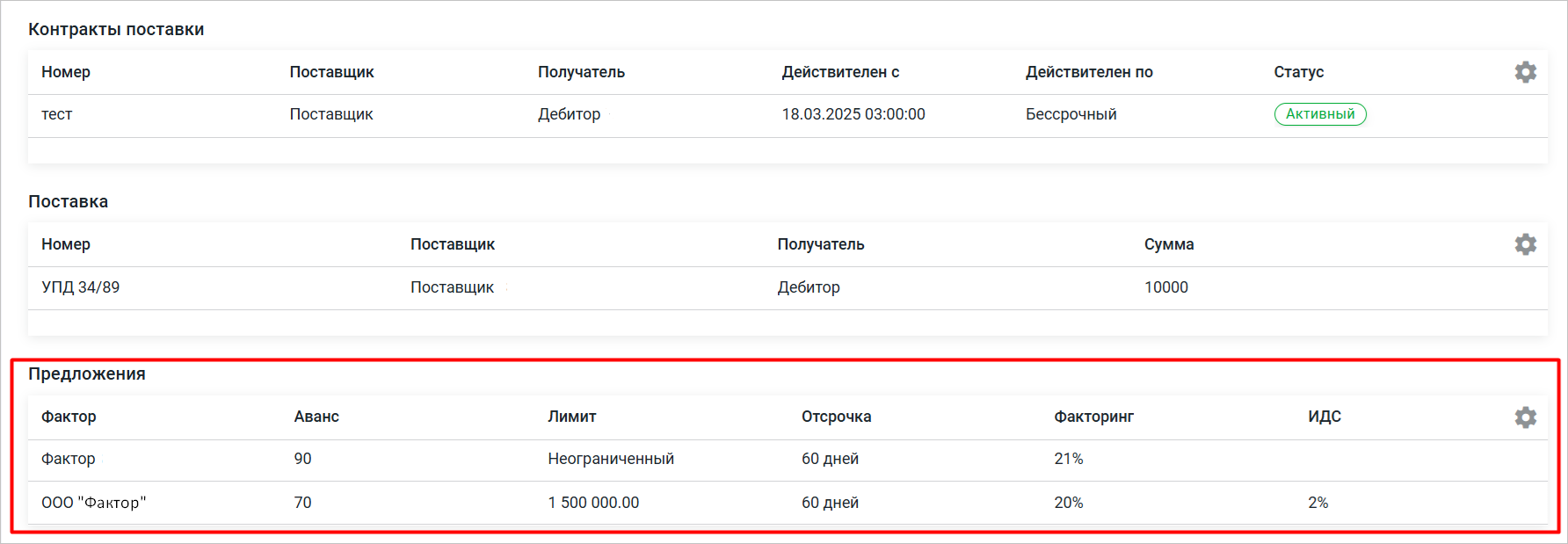 Факторинговый Маркетплейс. Работа поставщика с предложениями о финансировании