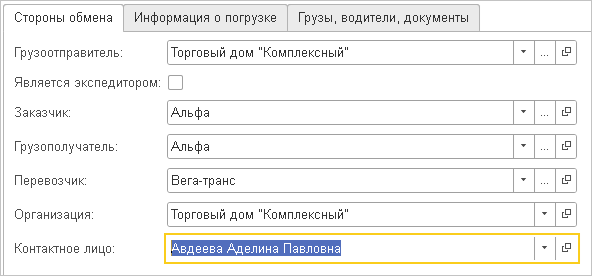 Грузы заполняются автоматически на основании данных реализации (Рис. 9).