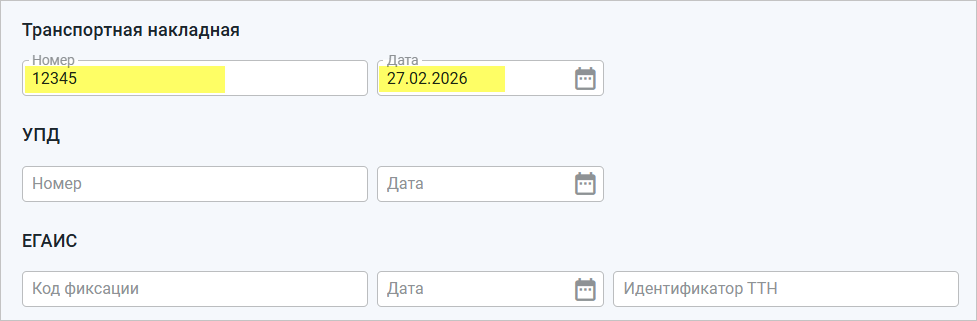 - Дата товарно-транспортной накладной