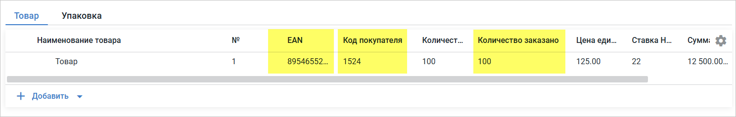 Обязательными полями для заполнения по товарным строкам являются (Рис. 5):