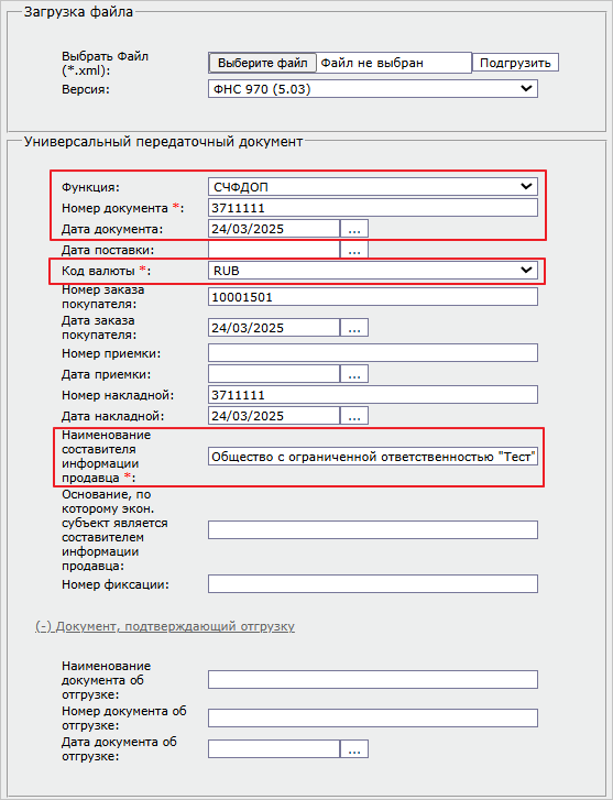 - В блоке «Универсальный передаточный документ» (Рис. 3):