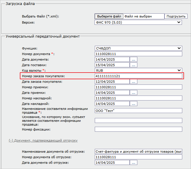 1. В блоке «Универсальный передаточный документ» (Рис. 3):