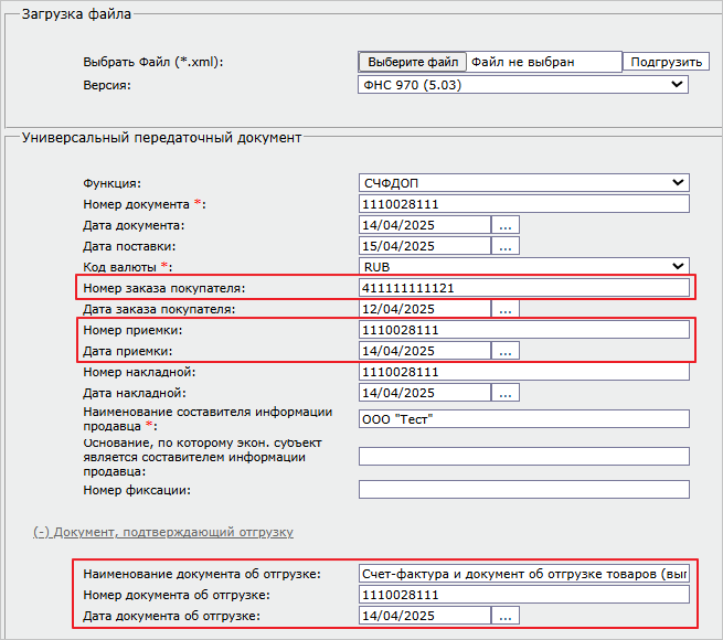 1. В блоке «Универсальный передаточный документ» (Рис. 3):